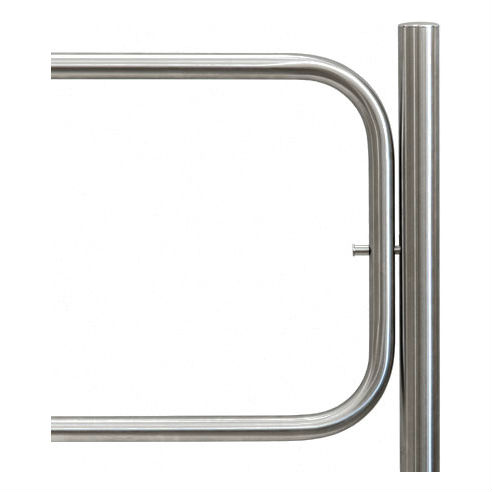 PERCo-BH02 2-15 – промежуточная стойка для прямолинейной стыковки секций с отверстием под стопорный механизм поворотной секции и с двумя отверстиями для крепления патрубков на стороне, противоположной створке.