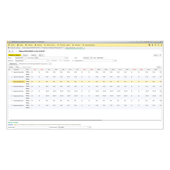 - снижение трудоемкости составления табелей учета рабочего времени в 1С;