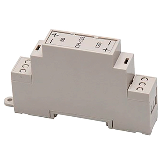 Элис ПН-125 DIN – источник стабилизированного питания, преобразователь напряжения в корпусе для крепления на DIN-рейку. Предназначен для питания оборудования постоянным напряжением 5 В при наличии постоянного входного напряжения 12 В без изоляции входных и выходных цепей.