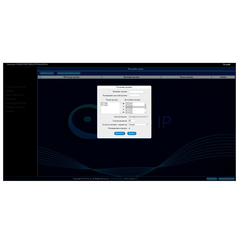 Основные характеристики True IP ПО SIP server True IP mini: