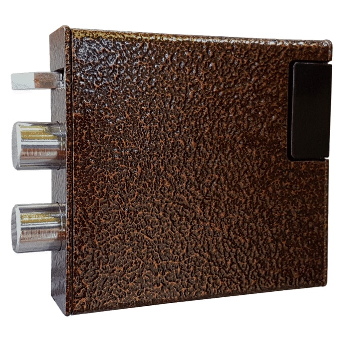 Отличительными чертами данного замка являются отсутствие видимого крепежа и покрытие рабочих элементов хромом.