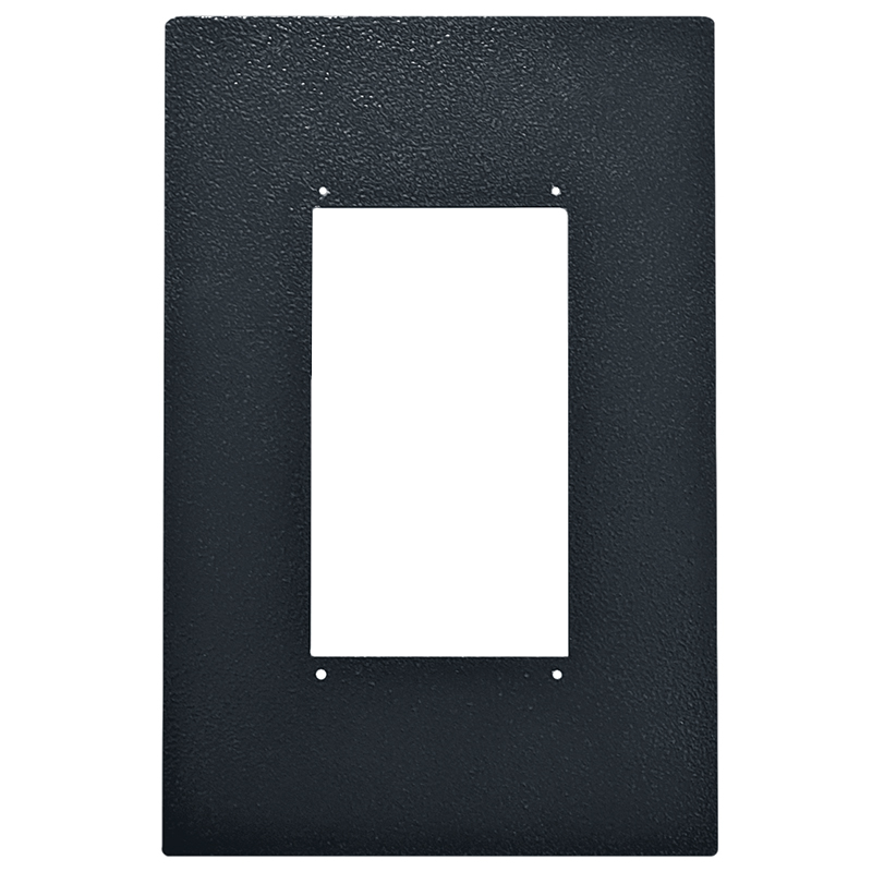 PS-U (черно-серый муар) – пластина мотажная, предназначена для установки совместно с блоками вызова DP400, 420, 300, 303, 305 вертикального исполнения (модификации 22 и 24). Закрывает монтажные отверстия, окна и ниши от демонтируемых устройств, в том числе от блоков вызова горизонтального исполнения.