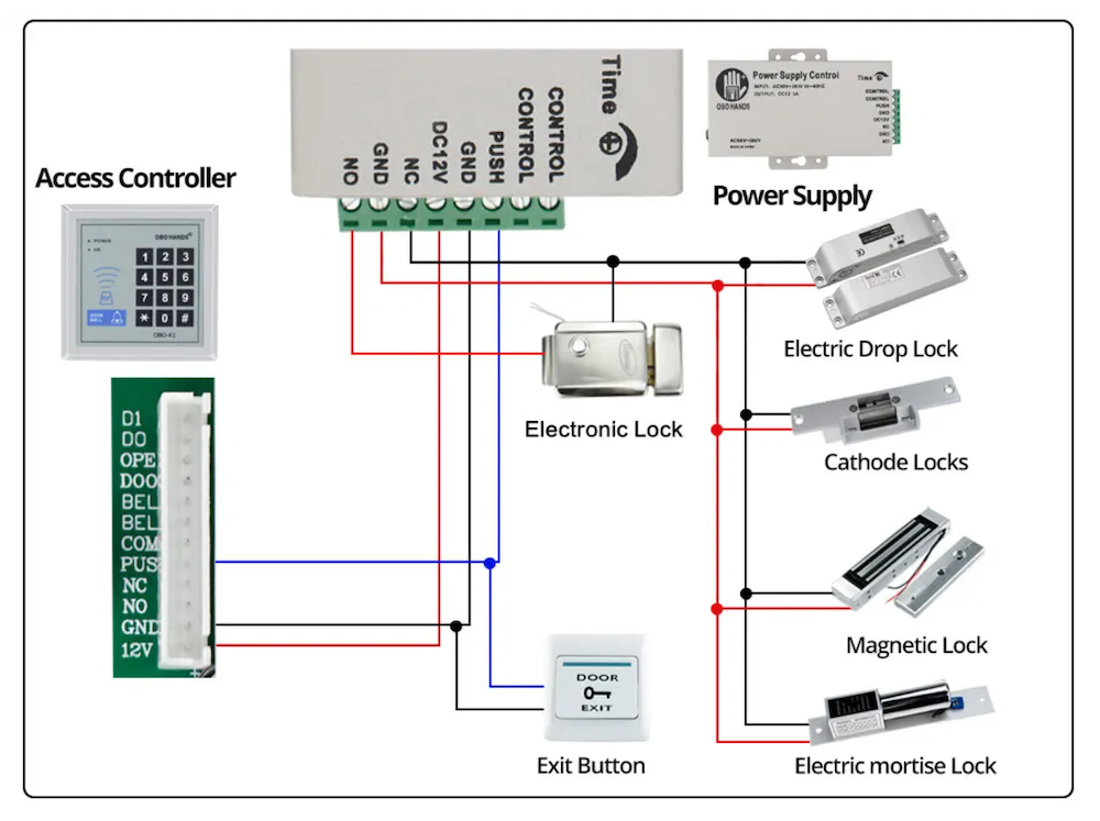 Блок питания имеет встроенное реле с таймером регулировки длительности импульса, чо позволяет одновременно управлять замком с нескольких устройств ( домофон, контроллер, кнопка выхода, умный дом…. )