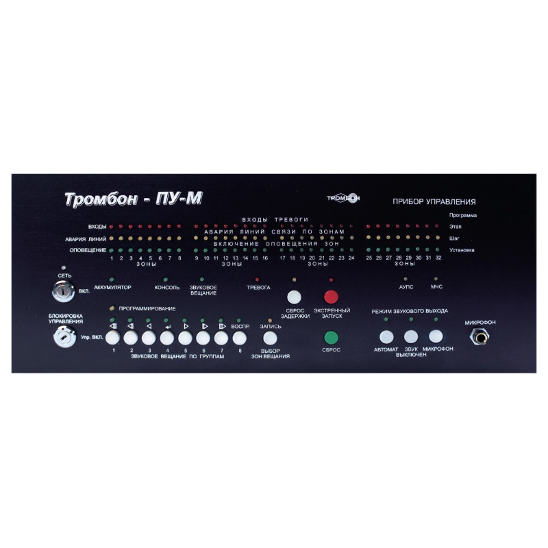 ПУ-М-16 – прибор предназначен для построения систем оповещения 3, 4 или 5 типов с возможностью реализации различных сценариев эвакуации. Прибор нового поколения, созданный на современной элементной базе. Имеет гибкие настройки алгоритмов оповещения, интеллектуальную систему контроля всех линий связи, порт для подключения удаленных консолей и интерфейс для подключения к ПК и сопряжения с системами безопасности «Орион» и «Интеллект +». Прибор имеет гибкие настройки режимов звукового вещания.