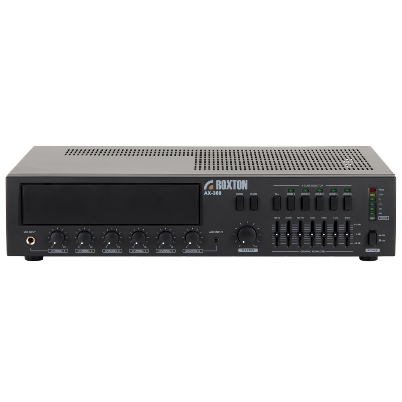 AX-360 – зональный усилитель класса D мощностью 360Вт позволяет строить распределённые системы речевого оповещения и музыкальной трансляции. В первую очередь он предназначен для озвучивания помещений. Пять линейных и семь микрофонных аудиовходов, с индивидуальными регуляторами громкости, фантомным питанием и тремя уровнями приоритетов, дают широкий выбор источников аудиосигнала, а дополнительный низкоомный аудиовыход позволяет подключать к усилителю акустические системы бытового и профессионального уровней.