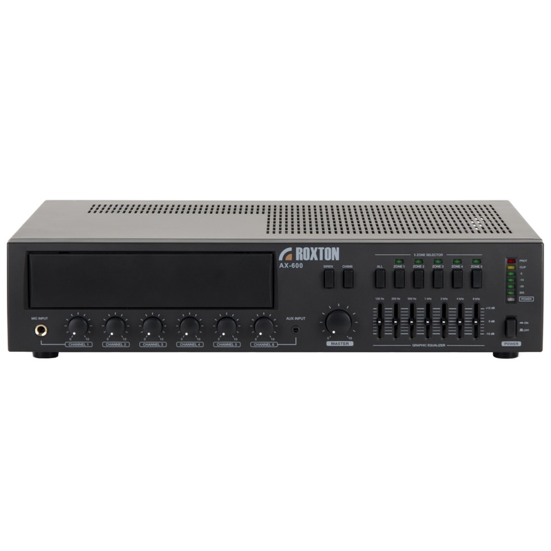 AX-600 – зональный усилитель класса D мощностью 600Вт позволяет строить распределённые системы речевого оповещения и музыкальной трансляции. В первую очередь он предназначен для озвучивания помещений. Пять линейных и семь микрофонных аудиовходов, с индивидуальными регуляторами громкости, фантомным питанием и тремя уровнями приоритетов, дают широкий выбор источников аудиосигнала.