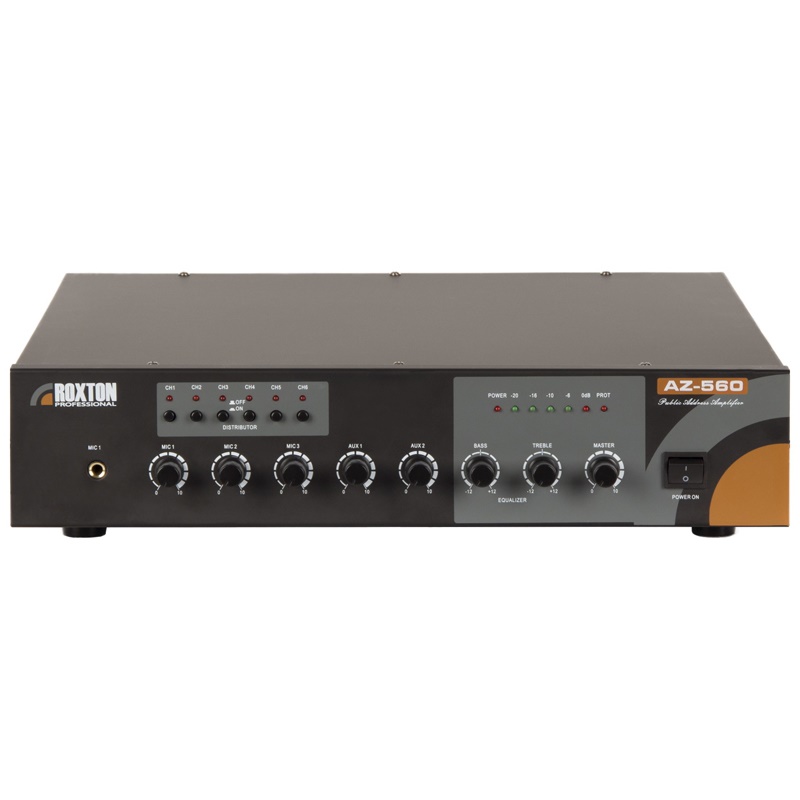 AZ-560 – зональный усилитель мощностью 560Вт – решение начального уровня для построения распределённых систем речевого оповещения и музыкальной трансляции. В первую очередь он предназначен для озвучивания помещений, разбитых на несколько зон оповещения. Два линейных и три микрофонных аудиовхода на задней панели дают широкий выбор источников аудиосигнала, а дополнительные низкоомные аудиовыходы позволяют подключать к усилителю акустические системы бытового и профессионального уровней.