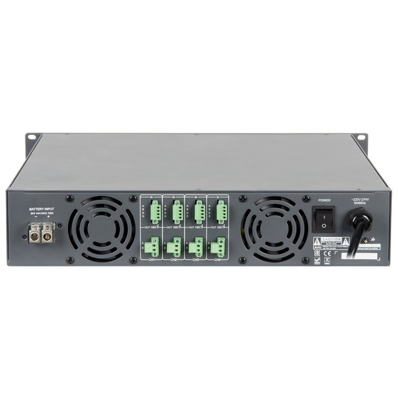 PA-8424 – четырёхканальный трансляционный усилитель класса D совокупной мощностью 960Вт применяется при построении систем речевого оповещения и музыкальной трансляции.