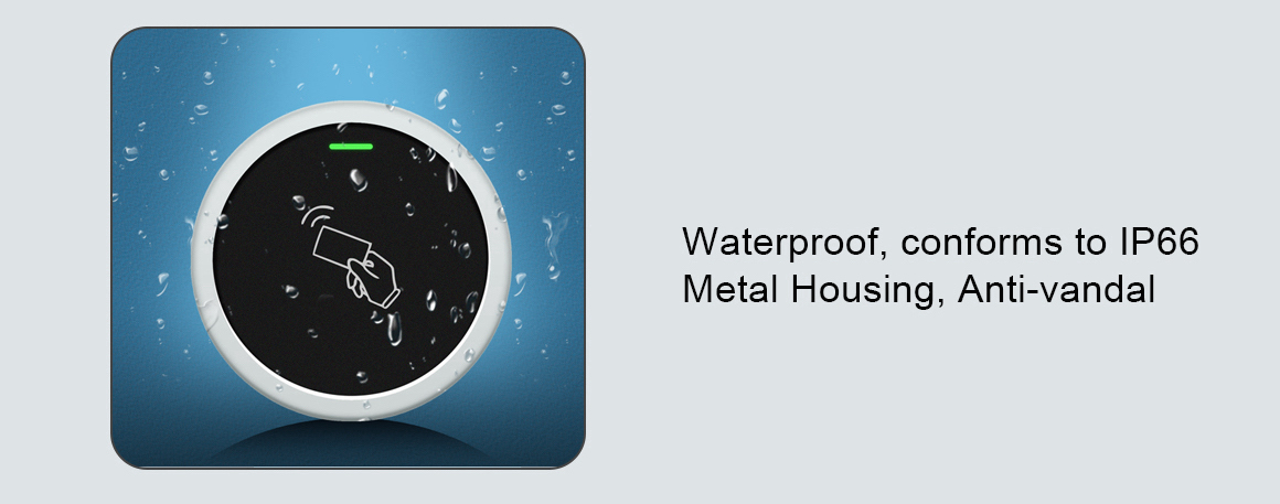 Корпус контроллера выполнен из алюминия, считыватель антивандальный с подсветкой состояния контроллера ( открыт/закрыт ). Контроллер предназначен для работы внутри помещений и на улице со степенью защиты IP66, но мы рекомендуем размещать оборудование так, что бы уменьшить попадание влаги и активного солнца на корпус считывателя.