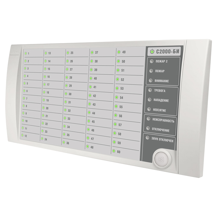 С2000-БИ – блок индикации для работы в составе ИСО «Орион» совместно с пультом контроля и управления С2000 (С2000М) и отображения с помощью встроенных индикаторов и звуковой сигнализации сообщений о событиях в 60 разделах системы.