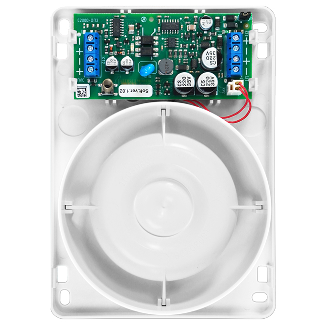С2000-ОПЗ – оповещатель охранно-пожарный звуковой адресный, предназначен для подачи звукового сигнала при обнаружении проникновения на охраняемый объект, а также для подачи пожарных и аварийных звуковых сигналов на различных объектах внутри помещений.