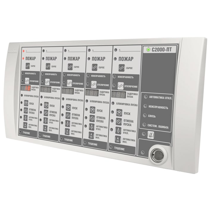 С2000-ПТ – блок индикации системы пожаротушения, предназначен для индикации состояния и дистанционного управления направлениями пожаротушения в составе автоматической установки газового, порошкового, аэрозольного пожаротушения или тушения тонкораспыленной водой.