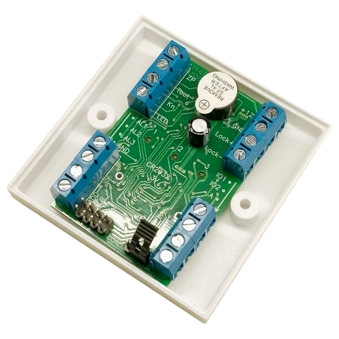 Прибор управляет светозвуковой индикацией, подает управляющий сигнал на исполнительное устройство СКУД, передает извещения на устройство мониторинга, в соответствии с заданным алгоритмом работы, который определяется тактикой обеспечения безопасности на объекте.