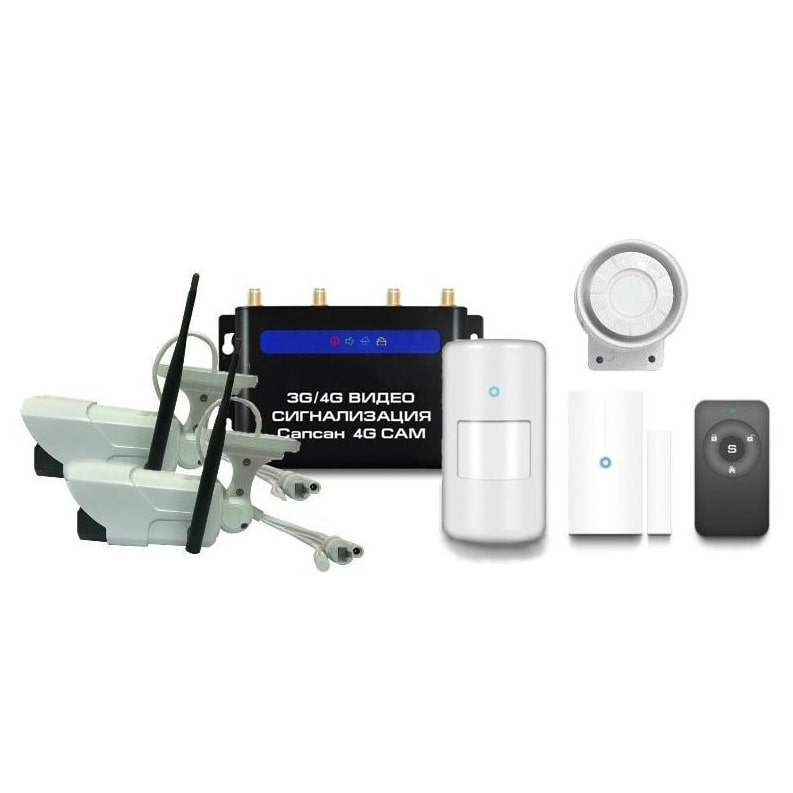 Sapsan GSM 3G/4G CAM – беспроводная GSM/4G/Wi-Fi сигнализация с датчиками и 2-мя уличными видеокамерами, предназначена для дистанционного контроля и охраны недвижимости, там где необходима установка камер: дачи, коттеджи, склады и др., путем получения SMS и звонков на заранее записанные номера телефонов абонентов (до 10 номеров), и просмотра видеопотока реального времени, которая сможет защитить практически любой вид имущества, не только от злоумышленников, но от техногенных аварий.