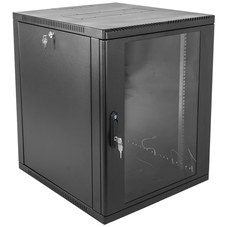 ШРН-15.500-9005 – настенный шкаф 19″ имеет цельнометаллическую сварную конструкцию, удобен для быстрой установки и монтажа оборудования, так как не требует сборки. Отсутствие острых углов с фронтальной стороны повышает безопасность при эксплуатации и обслуживании шкафов. Новая конструкция стеклянной двери с механическим креплением стекла увеличивает ее жесткость и обеспечивает легкую замену стекла при его повреждении. Возможна установка двери как с правой, так и с левой стороны. Усиленный точечный замок с поворотной ручкой увеличивает жесткость фиксации двери в закрытом положении и защиту от несанкционированного доступа, а также обеспечивает удобство при ее открывании.