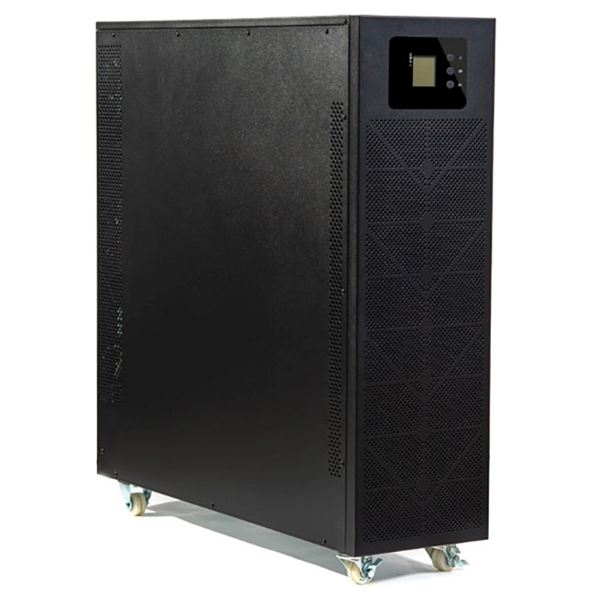 Источник рассчитан на круглосуточную эксплуатацию в режиме три фазы на входе/три фазы на выходе и обеспечивает питание нагрузки общей потребляемой мощностью до 20 000 ВА переменным током. Напряжение питания 380/400/415 В выбирается пользователем.