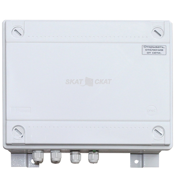 SKAT-VN.24/27АС исп.5 – источник переменного напряжения сетевой (не бесперебойный), предназначен для питания видеокамер и других потребителей с номинальным переменным напряжением 24 или 27В. 5 выходов, ток каждого выхода 1А. Выход 27В используется для компенсации падения напряжения на длинной линии.