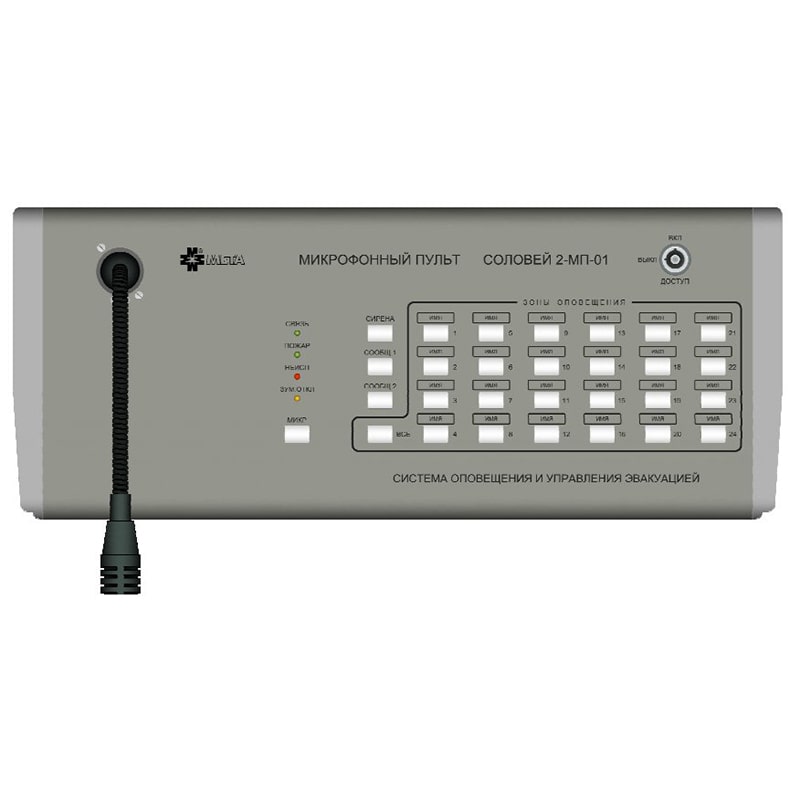 Предыдущий товар Следующий товар Соловей-МП-24 микрофонный пульт Мета 49250 ₽ Нет в наличии Артикул: УТ000029936 Категории: Дополнительное оборудование, Оповещение, трансляция, Речевое оповещение проводное Бренд: Мета Описание Детали Описание Соловей-МП-24 – микрофонный пульт на 24 зоны, предназначен для работы в составе прибора пожарного управления оповещением «Соловей 2» и обеспечивает возможность речевого оповещения и подачи сигнала оповещения «Сирена». Детали Производитель Мета Похожие товары Быстрый просмотр Быстрый просмотр Оповещение, трансляция, Речевое оповещение проводное, ОповещателиАС-3-30/100 (НМ) речевой оповещатель Полисервис 2540 ₽ В корзину Быстрый просмотр Быстрый просмотр Оповещение, трансляция, Оповещение, музыкальная трансляция, Усилители, микшерыTSo-AA120MZ усилитель Tantos 32267 ₽ В корзину Быстрый просмотр Быстрый просмотр Оповещение, трансляция, Речевое оповещение проводное, ОповещателиРОП-3П речевой оповещатель Системсервис 1730 ₽ В корзину