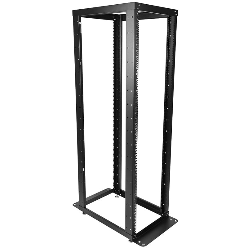 Стойка имеет полностью разборную двухрамную конструкцию, каркас повышенной жесткости скреплен болтами с внутренними шестигранниками. На вертикальные направляющие нанесена юнитовая маркировка.