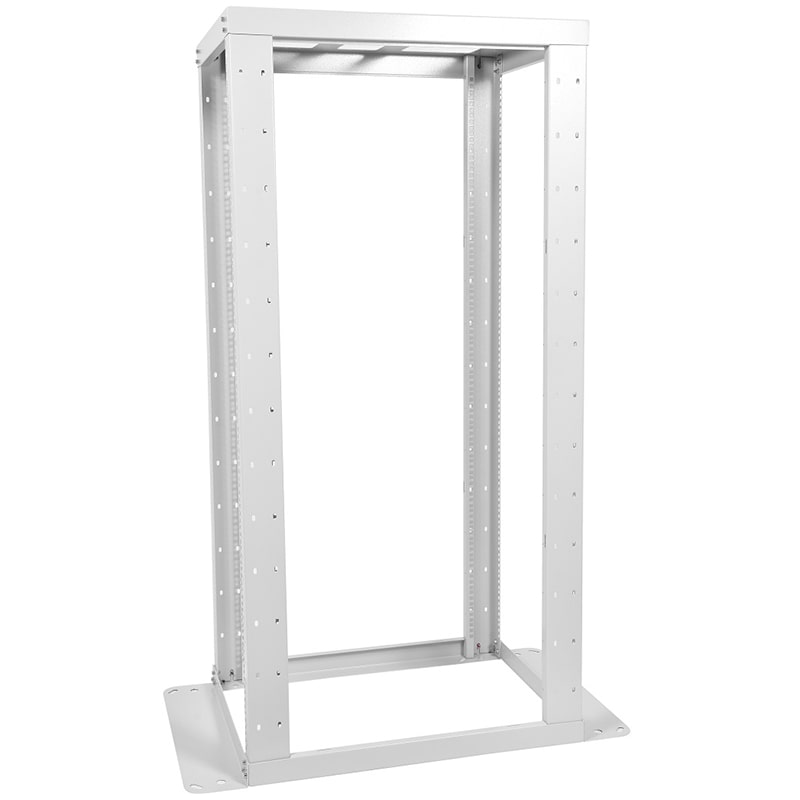 Стойка имеет полностью разборную двухрамную конструкцию, каркас повышенной жесткости скреплен болтами с внутренними шестигранниками. На вертикальные направляющие нанесена юнитовая маркировка.