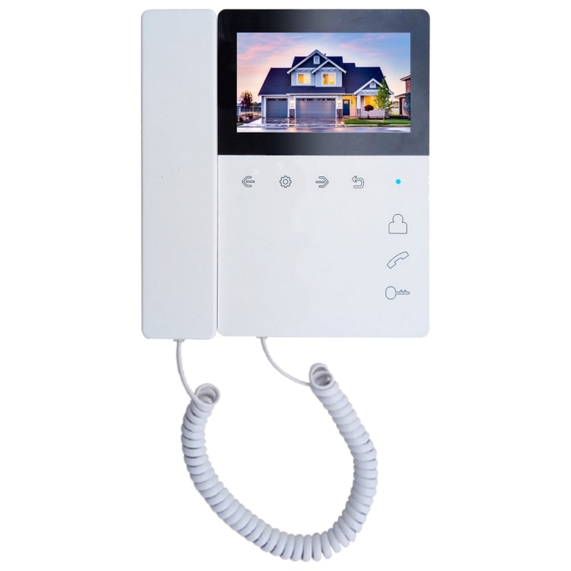 Elly с трубкой – монитор домофона с экраном 4.3 дюйма со встроенным блоком питания. Удобная в применении трубка на магните. Все управление осуществляется сенсорными кнопками.