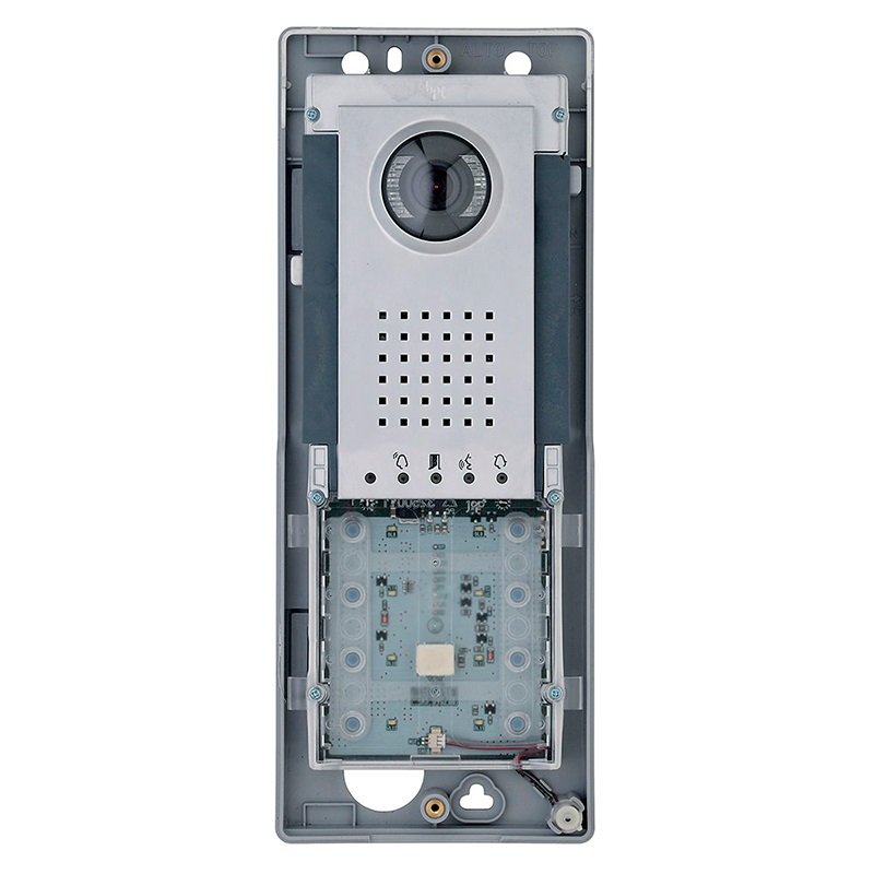 Оснащается клеммой для подключения электромеханического замка (0.5A, 12В), дополнительным «сухим» контактом (1A, 24В макс.), входами для кнопки открытия двери и контроля за состоянием двери (программируемый вход/выход), выходом для активации внешнего освещения (программируемый вход/выход).