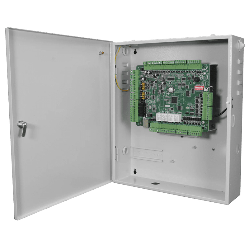 TR-C481B – сетевой контроллер на четыре точки прохода поддерживает стек протоколов TCP/IP, подключение четырех считывателей по Wiegand-интерфейсу и восьми по интерфейсу RS-485/OSDP, четырех кнопок выхода, четырех датчиков двери.
