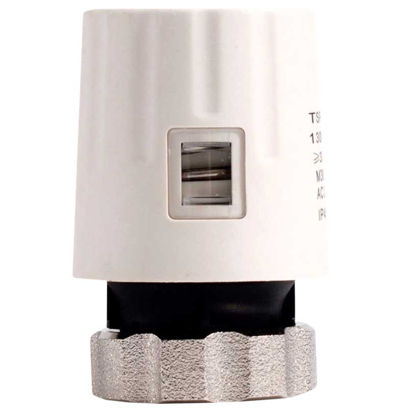 TSP 220/NC – термоэлектрический сервопривод нормально закрытый для автоматизации отопительной системы с целью обеспечения комфортной температуры отдельных контуров. Является исполняющим элементом в построении систем зонального управления. Монтируется на клапан в распределительном коллекторе, по сигналу от комнатного термостата или коммутатора управляет регулирующим клапаном, определяя поток теплоносителя в системах отопления.