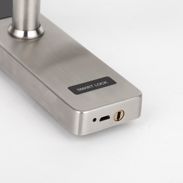 Подать питание можно через разъем Micro USB, который расположен на наружной части замка. Это можно сделать либо через обычный блок питания мобильного телефона либо от внешнего аккумулятора (типа Power Bank).