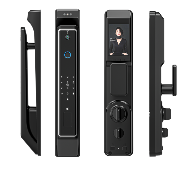 Биометрический смарт-замок с встроенным видео-глазком и функцией FACE-ID, выполненный из качественных материалов для установки на массивные входные двери в комплекте с беспроводным шлюзом TTLOCK G2.
