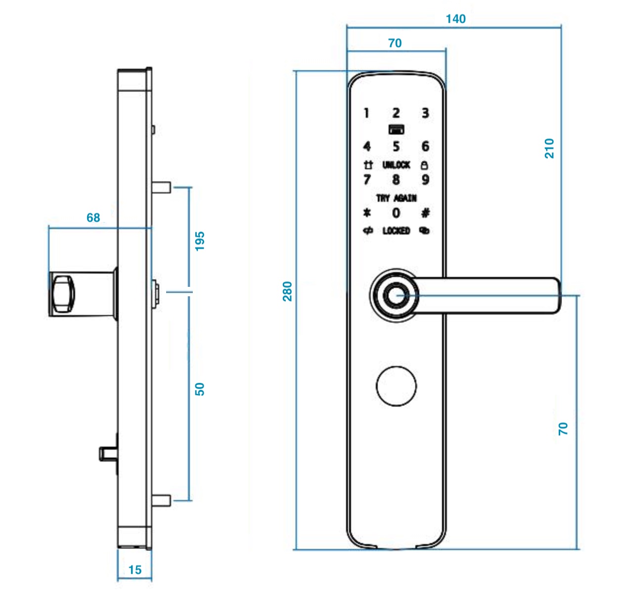 В замок встроен Bluetooth модуль, который позволяет управлять замком на расстоянии 10-20 метров. Вы сможете открывать замок с помощью телефона через bluetooth, удалять существующие пароли, посмотреть кто, каким способом и в какое время открывал замок и видеть уровень заряда батареек, находясь рядом с замком.