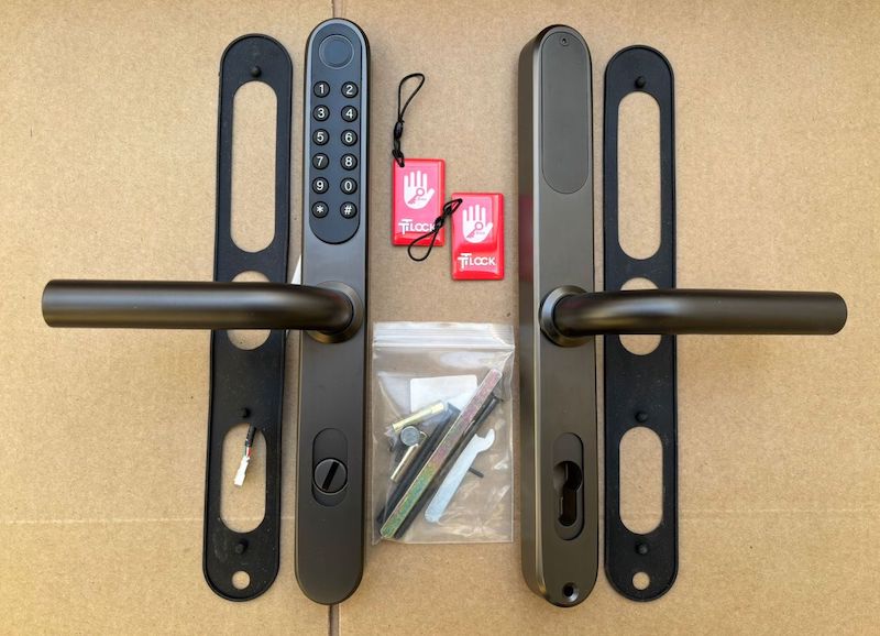 Узкий всепогодный смарт-замок с отверстиями под установку стандартного евро-цилиндра и удобными для ввода кода кнопками. Ручки можно устанавливать на любой запорный механизм с межосевым расстоянием 72/85/92мм.
