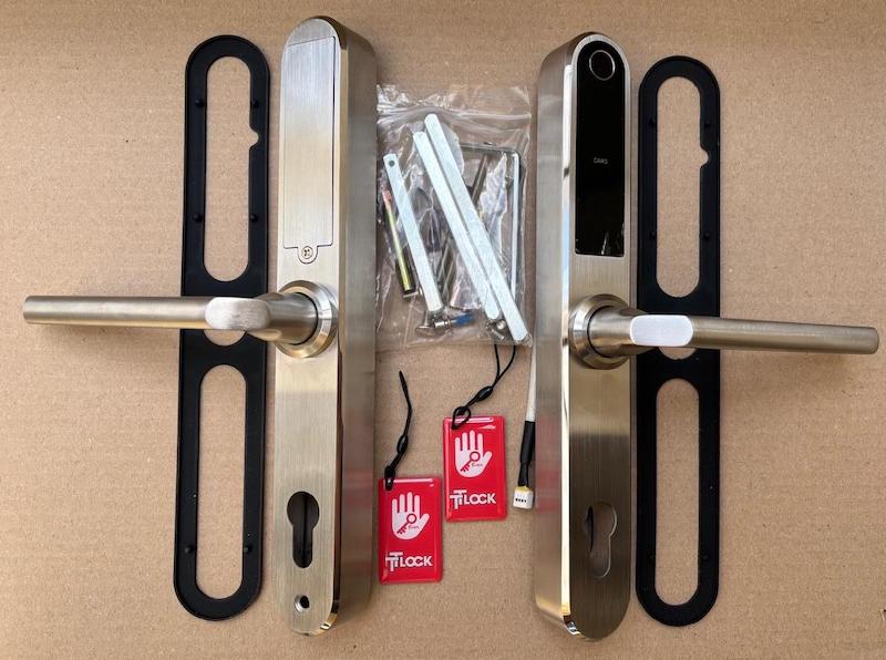 Универсальный биометрический замок на любые двери, в том числе на двери из тонкого пластикового или алюминиевого профиля. Замок может устанавливаться в виде накладки на любую запорную систему и имеет возможность движением «ручки вверх» управлять выдвижением ригелей на «наших» мортизах.