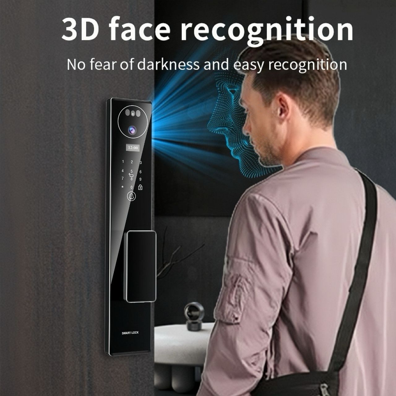 Биометрический смарт-замок с встроенной IP-камерой и функцией FACE-ID, выполненный из качественных материалов для установки на массивные входные двери.