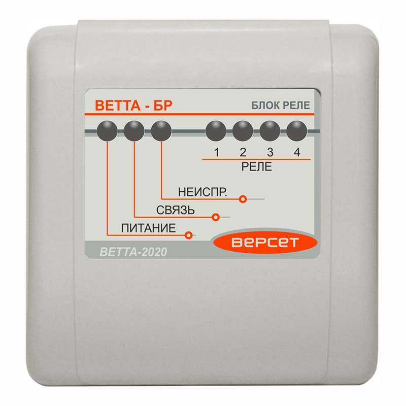 ВЕТТА-БР – блок реле, является компонентом прибора пультового «ВЕТТА-КП» и содержит 4 электромагнитных реле, каждое из которых выступает в качестве канала коммутации (КК) системы.